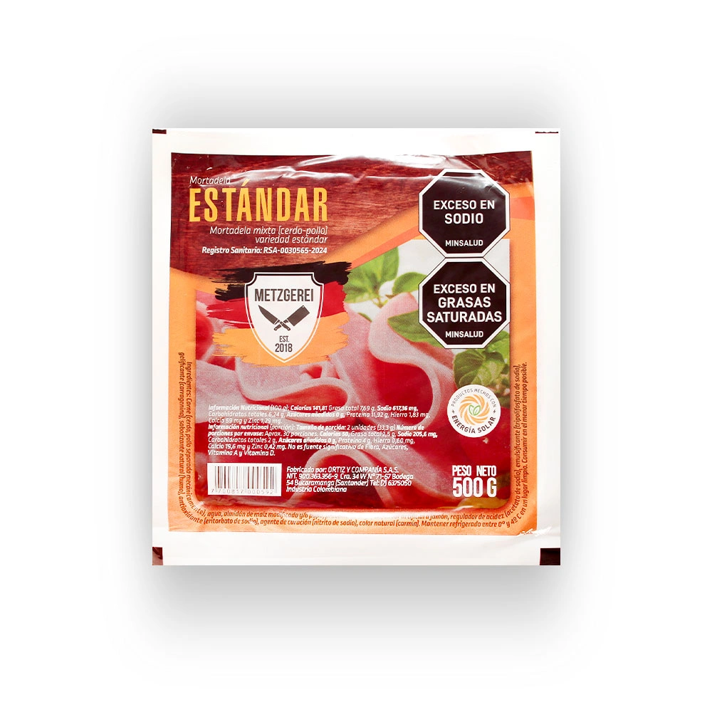 La Mortadela Estándar Metzgerei de Colombo Alemana está elaborada con una cuidada selección de cortes de cerdo, lo que garantiza un producto de excelente sabor, textura y versatilidad. Su receta práctica y su perfil suave la convierten en una opción ideal para todo tipo de comidas rápidas: desde sándwiches y wraps hasta desayunos, loncheras y pasabocas.
